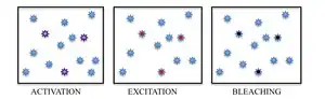 - ↑ Testa I, Wurm CA, Medda R, Rothermel E, von Middendorf C, Folling J, Jakobs S, Schonle A, Hell SW, Eggeling C (2010). "Multicolor fluorescence nanoscopy in fixed and living cells by exciting conventional fluorophores with a single wavelength". Biophysical Journal. 99 (8): 2686–2694. Bibcode:2010BpJ....99.2686T. doi:10.1016/j.bpj.2010.08.012. PMC 2956215. PMID 20959110.
