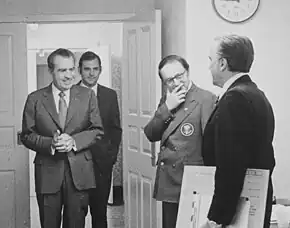 Doctors who have treated the president of the United States have had a variety of titles.[3] Presley Marion Rixey, a medical inspector in the United States Navy, was the first individual to serve in a full-time capacity as a physician to the president beginning in 1901. However, the title "White House Physician" was not used until created by an act of Congress in 1928.[4] It has been unclear if this legal position of White House physician rests with the physician to the president or the director of the White House Medical Unit.