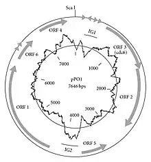 Schematic map of the pPO1 plasmid from the hyperacidophile Picrophilus oshimae