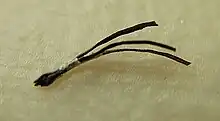 | An extracted pilus multigeminus with three distinct hairs growing from the same source. | |