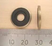 The Bodok seal consists of a neoprene washer with a peripheral metal reinforcing ring to prevent splaying. The seal is incombustible and resistant to the high pressures imposed upon it by cylinder gases, approximately 2,000 psi (140 bar) in a full cylinder.