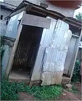 | A simple pit latrine with a squatting pan and shelter[1] | |