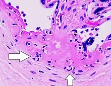 - 1 2 Redline, RW. (Oct 2007). "Villitis of unknown etiology: noninfectious chronic villitis in the placenta". Hum Pathol. 38 (10): 1439–46. doi:10.1016/j.humpath.2007.05.025. PMID 17889674.