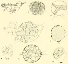 The plasmodiophores have historically been regarded as Fungi. The first description of plasmodiophores as a taxonomic group was in 1885 by Zopf, who united two genera Plasmodiophora and Tetramyxa in a common family “Plasmodiophoreæ”, inside the group “Monadineæ”, as part of the division Myxomycetes. The family was renamed “Plasmodiophoraceae” in 1888 by Berlese.[9] In 1892, Engler placed the family in its own class “Plasmodiophorales”, later renamed “Plasmodiophoromycetes” to fit nomenclature standards.[10]