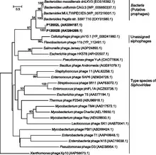- ↑ Kang I, Jang H, Cho JC (December 2015). "Complete genome sequences of bacteriophages P12002L and P12002S, two lytic phages that infect a marine Polaribacter strain". Standards in Genomic Sciences. 10 (1): 82. doi:10.1186/s40793-015-0076-z. PMC 4615864. PMID 26500718.