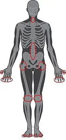 | Osteoarthritis (OA) location on the skeleton anterior | |