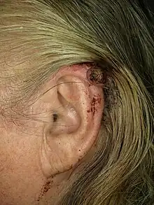 | Polypoid melanoma of the left ear in 83-year old woman. | |
