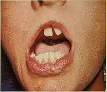 - Facial findings: cleft palate with or without cleft lip (75%), pits in the lower lip (40%), fibrous bands in the mouth known as syngnathia (25%), and tissue connecting the upper and lower eyelids