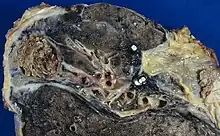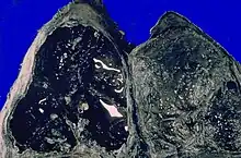 PTLD affects a substantial proportion of TB survivors[3] (of whom there were an estimated 155 million globally in 2020), estimated as much as 50 percent overall and more than 70 percent in survivors of multi-drug-resistant tuberculosis.[4] Around 10 percent have lost more than half of their lung function.[4] Delayed diagnosis of TB, multidrug-resistant tuberculosis, and repeated TB infections are correlated with greater incidence of PTLD.[2] People who have HIV are less likely to have PTLD, possibly because of their impaired immune response.[2][3] Cigarette smokers are 25% more likely to have lung damage, and more severe damage, after cure of a TB infection.[5] People who cook with 3-4 stoves instead of 1-2 stoves are more likely to have lung damage. A lack of heating also increased how often symptoms occurred. Alcoholism also increased the risk of PTLD. Ambient air pollution did not increase the risk of PTLD. These kinds of pollution include methods of household lighting; modes of household ventilation; secondary cigarette smoking; urban, rural or traffic exposures. Food insecurity, eating cereals, and consuming oily food were strongly associated with symptomatic PTLD. Eating fruits and drinking juice at least once a week were associated with reduced odds of developing symptomatic PTLD.[6] Co-infection may make lung damage worse, and thus vaccination is recommended to prevent PTLD.[1][2] Many studies have found a link between TB and later diagnosis with chronic obstructive pulmonary disease.[7]