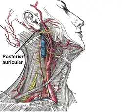 The posterior auricular artery is a small artery that arises from the external carotid artery. It ascends along the side of the head. It supplies several muscles of the neck and several structures of the head.