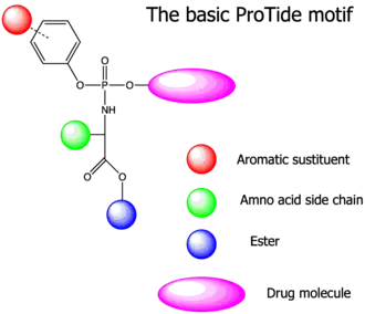 - ↑ Cahard D, McGuigan C, Balzarini J (May 2004). "Aryloxy phosphoramidate triesters as pro-tides". Mini Reviews in Medicinal Chemistry. 4 (4): 371–381. doi:10.2174/1389557043403936. PMID 15134540.