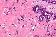 - ↑ Powell CM, Cranor ML, Rosen PP (March 1995). "Pseudoangiomatous stromal hyperplasia (PASH). A mammary stromal tumor with myofibroblastic differentiation". Am. J. Surg. Pathol. 19 (3): 270–7. doi:10.1097/00000478-199503000-00004. PMID 7872425. S2CID 19170467.