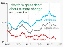 - ↑ Saad, Lydia (20 April 2023). "A Steady Six in 10 Say Global Warming's Effects Have Begun". Gallup, Inc. Archived from the original on 20 April 2023.