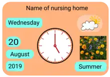 The aim of cognition-oriented treatments, which include reality orientation and cognitive retraining is the restoration of cognitive deficits. Reality orientation consists in the presentation of information about time, place or person in order to ease the understanding of the person about its surroundings and his place in them, for example using an orientation board. On the other hand, cognitive retraining tries to improve impaired capacities by exercitation of mental abilities. Both have shown some efficacy improving cognitive capacities,[19][20] although in some works these effects were transient and negative effects, such as frustration, have also been reported.[10] Most of the programs inside this approach are fully or partially computerized and others are fully paper-based, such as the cognitive retention therapy method.[21][22]