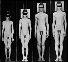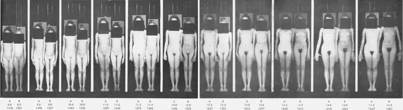 - 1 2 3 Tanner JM, Davies PS (1985). "Clinical longitudinal standards for height and height velocity for North American children". The Journal of Pediatrics. 107 (3): 317–329. doi:10.1016/S0022-3476(85)80501-1. PMID 3875704.
