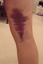 After a few days with grade two and three injuries, a large bruise may appear below the injury site caused by the bleeding within the tissues.