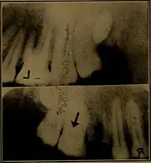 - ↑ Edds AC, Walden JE, Scheetz JP, Goldsmith LJ, Drisko CL, Eleazer PD (July 2005). "Pilot study of correlation of pulp stones with cardiovascular disease". Journal of Endodontics. 31 (7): 504–6. doi:10.1097/01.don.0000168890.42903.2b. PMID 15980708.