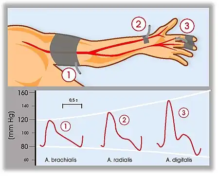 - ↑ Imholz, B. P., Wieling, W., van Montfrans, G. A., Wesseling, K. H. (1998). Fifteen years experience with finger arterial pressure monitoring: assessment of the technology. Cardiovascular research, 38(3), 605–16.