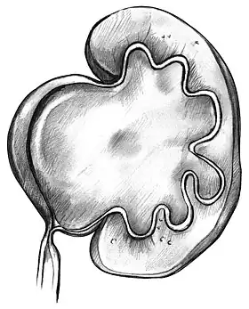 ![]() Drawing of a swollen kidney that results from ureteropelvic junction obstruction | |