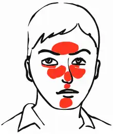 | Rosacea over the cheeks and nose[1] | |