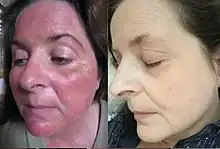 | Symptoms | Facial redness, swelling, and small and superficial dilated blood vessels[2][3] |