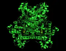- ↑ Henderson CE, Perham RN, Finch JT (May 1979). "Structure and symmetry of B. stearothermophilus pyruvate dehydrogenase multienzyme complex and implications for eucaryote evolution". Cell. 17 (1): 85–93. doi:10.1016/0092-8674(79)90297-6. ISSN 0092-8674. PMID 455461. S2CID 35282258.