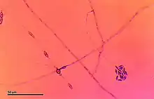 Pythium is a genus of parasitic oomycetes. They were formerly classified as fungi. Most species are plant parasites, but Pythium insidiosum is an important pathogen of animals, causing pythiosis. The feet of the fungus gnat are frequently a vector for their transmission.[1]