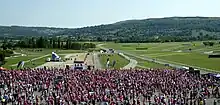 The Imperial Cancer Research Fund identifies Jim Cowan as having the original idea for the Race for Life.[1] The Fund then engaged Mr. Cowan to organise and act as race director for the first Race for Life event,[1] which took place in 1994 in Battersea Park, London, where 750 participants raised £48,000. The following year, the race was extended to 6 venues and had 4,500 participants with £210,000 raised. It continued to grow year on year to become one of the UK's largest fundraising events, which in 2006 involved 240 races, 750,000 participants and raised £46,000,000. Since Race for Life began in 1994, 6,000,000 people across the UK have raised over £493,000,000 for the charity.[2] Notable participants include: Jane Tomlinson, whose first fundraising event was a Race for Life in 2001 after being diagnosed with terminal breast cancer. She went on to raise over £1,750,000 for charity before her death in 2007.[3] In 2009, actresses Laila Morse and Lynda Bellingham became a Race for Life ambassadors in memory of Wendy Richard and Jade Goody, both of whom had recently died from cancer.[4] Bellingham later died from cancer in 2014.