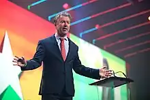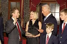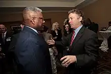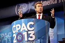 Randal Howard Paul (born January 7, 1963) is an American politician serving as the junior United States senator from Kentucky since 2011. A member of the Republican Party, he has described himself as a constitutional conservative and a supporter of the Tea Party movement. His libertarian views have been compared to those of his father, three-time presidential candidate and 12-term U.S. representative from Texas, Ron Paul.[1][2]