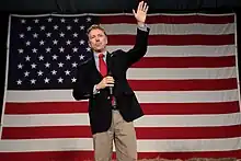 Although Grayson was considered the frontrunner in July,[73] Paul found success characterizing Grayson as a "career politician" and challenging Grayson's conservatism. Paul ran an ad in February that made an issue out of Grayson's 2008 admission that he voted for Bill Clinton when he was 20 years old.[74] James Dobson, a Christian evangelical figure, endorsed Grayson on April 26, 2010, based on the advice of what Dobson described as "senior members of the GOP", but on May 3, the Paul campaign announced that Dobson had changed his endorsement to Paul[75] after Paul and some Paul supporters had lobbied Dobson insisting on Paul's social conservative bona fides.[76] On May 18, Paul won the Republican primary with 59% of the vote to Grayson's 35%.[77][78]