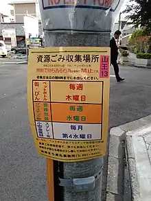 - ↑ ""Recycling in Japan" or "Reasons to get it right and avoid eternal shame"". SoraNews24 -Japan News-. 2014-05-14. Retrieved 2020-03-23.