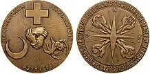 The Red Lion and Sun Society (Persian: جمعیت شیر و خورشید سرخ ایران Jam-eiyat Šir o Xoršid Sorx Irân) of Iran was established in 1922 and admitted to the International Red Cross and Red Crescent Movement in 1923.[1] However, some report the symbol was introduced at Geneva in 1864[2] as a countermeasure to the Red Crescent and the Red Cross used by two of Iran's rivals: the Ottoman Empire and the Russian Empire, respectively.