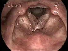 Reinke's edema is the swelling of the vocal cords due to fluid (Edema) collected within the Reinke's space.[2] First identified by the German anatomist Friedrich B. Reinke in 1895, the Reinke's space is a gelatinous layer of the vocal cord located underneath the outer cells of the vocal cord.[3][4] When a person speaks, the Reinke's space vibrates to allow for sound to be produced (phonation). The Reinke's space is sometimes referred to as the superficial lamina propria.[5]