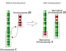 A translocation involves the exchange of segments of chromosomes that are not a homologous pair. In most cases, this leads to balanced translocations, in which no DNA is lost therefore is usually asymptomatic. However, as female gametes are formed, it is probable that 2/3 of embryos produced will have unbalanced translocations within their DNA if fertilised by sperm with a balanced translocation too. Translocation mutations can occur at any point during fertilization or even the first meiotic division that the oocyte undergoes during foetal life.[9]