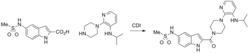 - ↑ Romero DL, Morge RA, Genin MJ, Biles C, Busso M, Resnick L, et al. (May 1993). "Bis(heteroaryl)piperazine (BHAP) reverse transcriptase inhibitors: structure-activity relationships of novel substituted indole analogues and the identification of 1-[(5-methanesulfonamido-1H-indol-2-yl)-carbonyl]-4-[3- [(1-methylethyl)amino]-pyridinyl]piperazine monomethanesulfonate (U-90152S), a second-generation clinical candidate". Journal of Medicinal Chemistry. 36 (10): 1505–8. doi:10.1021/jm00062a027. PMID 7684450.