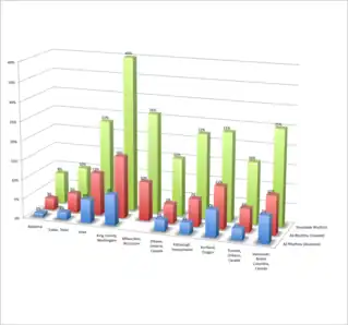 | Ottawa, Ontario, Canada (includes 20 other cities in the OPALS group) | Ottawa/OPALS/British Columbia RCC | 4,030,696 | 314 | 39 | 37 |