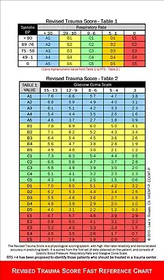 - ↑ Champion HR, Sacco WJ, Copes WS, Gann DS, Gennarelli TA, Flanagan ME (May 1989). "A revision of the Trauma Score". The Journal of Trauma. 29 (5): 623–9. doi:10.1097/00005373-198905000-00017. PMID 2657085.