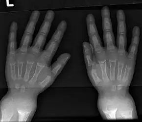 - ↑ El-Sobky TA, Shawky RM, Sakr HM, Elsayed SM, Elsayed NS, Ragheb SG, Gamal R (15 November 2017). "A systematized approach to radiographic assessment of commonly seen genetic bone diseases in children: A pictorial review". J Musculoskelet Surg Res. 1 (2): 25. doi:10.4103/jmsr.jmsr_28_17. S2CID 79825711.