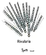 - ↑ Guiry, Michael D. (2014). Rivularia C.Agardh ex Bornet & Flahault, 1886. In: Guiry, M.D. & Guiry, G.M. (2014). AlgaeBase. World-wide electronic publication, National University of Ireland, Galway (taxonomic information republished from AlgaeBase with permission of M.D. Guiry). Accessed through: World Register of Marine Species at http://www.marinespecies.org/aphia.php?p=taxdetails&id=146623 on 2014-12-09