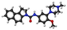 S32212 is a drug which is under preclinical investigation as a potential antidepressant medicine.[1][2] It behaves as a selective, combined 5-HT2C receptor inverse agonist and α2-adrenergic receptor antagonist (at all three subtypes—α2A, α2B, and α2C) with additional 5-HT2A and, to a lesser extent, 5-HT2B receptor antagonistic properties, and lacks any apparent affinity for the monoamine reuptake transporters or for the α1-adrenergic, H1, or mACh receptors.[1] This profile of activity is compatible with the definition of a noradrenergic and specific serotonergic antidepressant (NaSSA), and as such, S32212 could in turn be classified as a NaSSA.