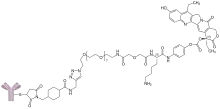 Sacituzumab govitecan is a conjugate of the humanized anti-Trop-2 monoclonal antibody linked with SN-38, the active metabolite of irinotecan.[20] Each antibody having on average 7.6 molecules of SN-38 attached.[21] Linkage to an antibody allows the drug to specifically target cells expressing Trop-2.