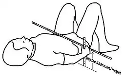 A related measurement is supine abdominal height (SAH), the abdominal height as measured in the supine position.[6] The SAH method is easier for self-monitoring, but gives slightly lower results due to gravity; the values are not directly comparable.