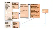 How does the interaction of life situation, stressors and GRRs contribute to shaping and strengthening the SOC? Antonovsky answers that it is through the pattern of one's life experiences and how they determine the three dimensions of the SOC: “consistent experiences provide the basis for the comprehensibility component; a good load balance, for the manageability component; and, least clear of all, participation in shaping outcome, for the meaningfulness component.”[2] Although chronic resources and chronic stressors (see section on Life situation), lay the foundation for the SOC, Antonovsky[1] also states: “Paradoxically, then, a measure of unpredictable experiences – which call forth hitherto unknown resources – is essential for a strong sense of coherence”. Stressor life events thus strengthen the SOC through “potentiation”, demanding a re-orientation and use of new resources “thereby enriching one’s repertoire.”[1]