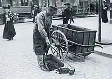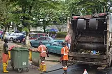 A sanitation worker (or sanitary worker) is a person responsible for cleaning, maintaining, operating, or emptying the equipment or technology at any step of the sanitation chain.[1]: 2 This is the definition used in the narrower sense within the WASH sector. More broadly speaking, sanitation workers may also be involved in cleaning streets, parks, public spaces, sewers, stormwater drains, and public toilets.[2] Another definition is: "The moment an individual’s waste is outsourced to another, it becomes sanitation work."[3]: 4 Some organizations use the term specifically for municipal solid waste collectors, whereas others exclude the workers involved in management of solid waste (rubbish, trash) sector from its definition.
