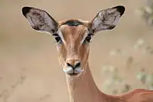 In animals, the function of the pinna is to collect sound, and perform spectral transformations to incoming sounds which enable the process of vertical localization to take place.[2] It collects sound by acting as a funnel, amplifying the sound and directing it to the auditory canal. While reflecting from the pinna, sound also goes through a filtering process, as well as frequency dependent amplitude modulation which adds directional information to the sound (see sound localization, head-related transfer function, pinna notch). In various species, the pinna can also signal mood and radiate heat.