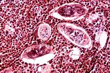- ↑ Khurana S, Dubey ML, Malla N (April 2005). "Association of parasitic infections and cancers". Indian J Med Microbiol. 23 (2): 74–79. doi:10.1016/S0300-483X(01)00357-2. PMID 15928434.