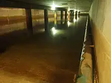 Schmutzdecke[1] (German, "dirt cover" or dirty skin, sometimes wrongly spelled schmutzedecke) is a hypogeal biological layer formed on the surface of a slow sand filter and a form of periphyton.[2] The schmutzdecke is the layer that provides the effective purification in potable water treatment, the underlying sand providing the support medium for this biological treatment layer.