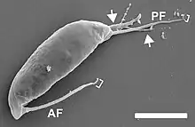 - ↑ Cavalier-Smith, Thomas (2017). "Euglenoid pellicle morphogenesis and evolution in light of comparative ultrastructure and trypanosomatid biology: semi-conservative microtubule/strip duplication, strip shaping and transformation". European Journal of Protistology. 61 (Pt A): 137–179. doi:10.1016/j.ejop.2017.09.002. PMID 29073503.