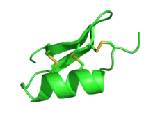 - 1 2 3 4 5 Zhu Q, Liang S, Martin L, Gasparini S, Ménez A, Vita C (September 2002). "Role of disulfide bonds in folding and activity of leiurotoxin I: just two disulfides suffice". Biochemistry. 41 (38): 11488–94. doi:10.1021/bi026136m. PMID 12234192.