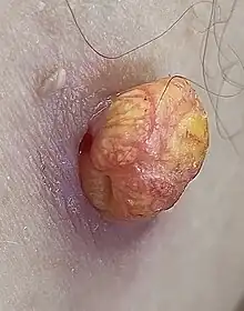 | Sebaceoma. From the skin near the armpit. 80 year old man. | |